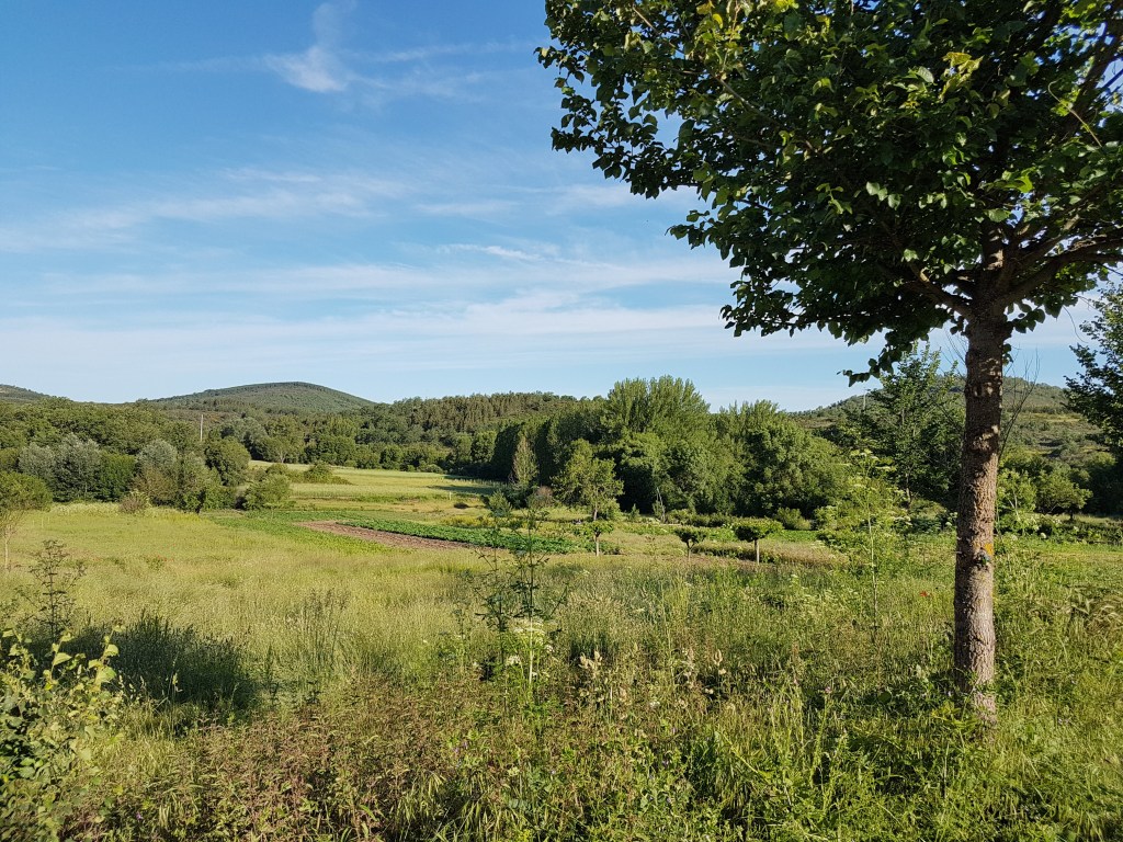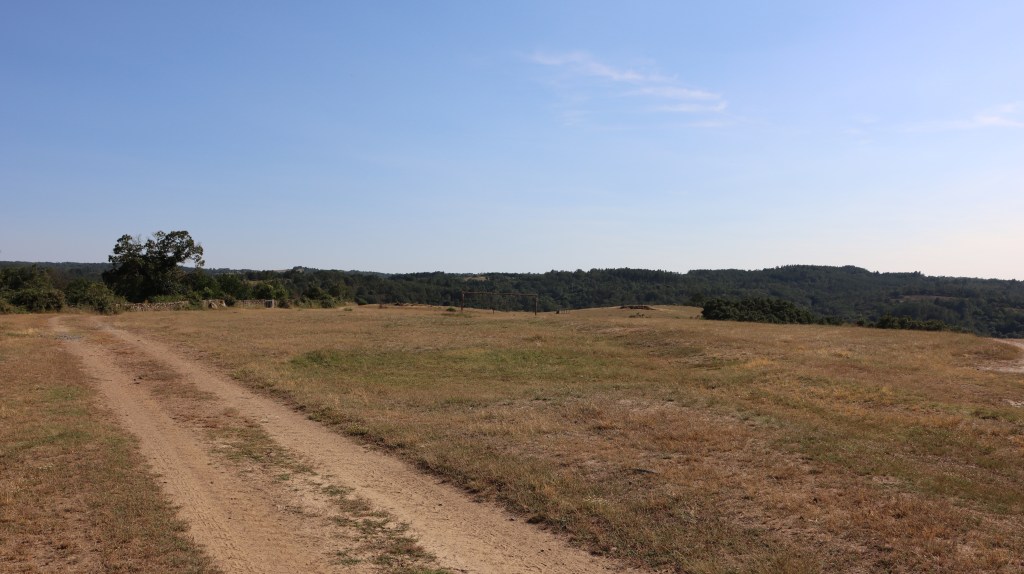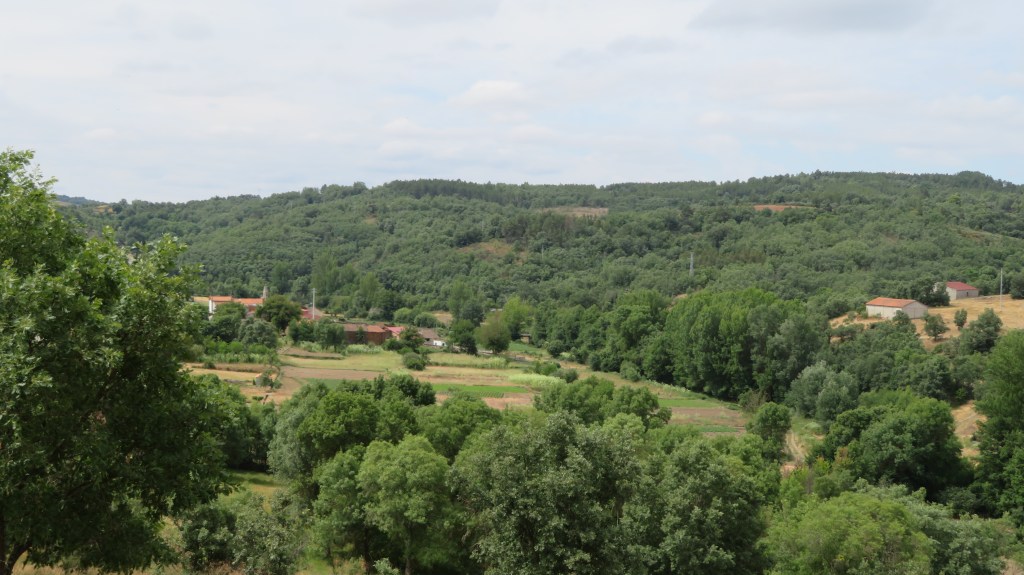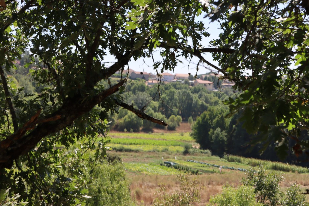Inda antes de se botáren a quemer i a drumir, pónen-se a relhembrar l que bírun nesse die: ls lhameiros de la Puontelhina, las Funtaninas, de l Juncal, Belharino, Bal de Conde i de ls Salgadeiros, todos cun bien freznos, touças nas bordas i alguns salgueiros cerca de ls ribeiros; las huortas de las marges de la ribeira d’Angueira i de l ribeiro de la Puontelhina; tierras de sequeiro, ũas de fuolha, cun trigo i centeno inda berde i un ou outro carbalho alhá pul meio, i outras d’arada, qu’inda nun bai muito tiempo fúrun relbadas; tierras de monte, chenas de scobas, xaras, chougarços, carqueijas, spineiros, silbas, urzes, tomielhos, tomelhina, carrasqueiras, touças i, anté, trobisqueiras. Inda que, de berano, la maior parte destes sítios stéian secos i séian mui calientes, oumenos ls lhameiros i las huortas, por donde pássan ls ribeiros ou hai fuontes, son mais húmados i frescos.