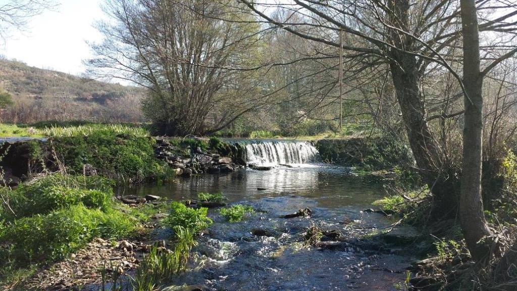 Bolando, ribeira abaixo, subre la puonte de la Senhora i l Poço de l Canhiço, antre Cabeço l Cuorbo i l Tanque pa la Cabada, antre ls huortos, lhatas i lhameiros de l Múrio i de la Eigreija, l fondo de l Cachon i la Çanca i, riente a las casas, pul fondo de la huortas de Salina i de la Mediana, chégan als Puntones. Passando pulas huortas de l Areal, antre la Faceira de l Prado i la Faceira i subrebolando l’açuda de las Uolmedas, ban a dar a la Faceira de Telhado i a las Antraugas, adonde, cerca dun uolmo, páran pa quemer i matar la sede i çcansar un cachico. Que nin auga, nin moscas, nin atabanos, nin grilhos, nin paixarinas, nin lhibulinas i até marie-tresas le fáltan nas bordas de la ribeira i de la caliendra nin nas beigas antre ambas.