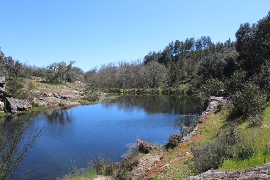 Subrebolando l camino a la squierda de la marra caras a Angueira, pula Masseira, apuis de Cabeço Alto, antre Standeiro de Pardos i la Marmolina, bíran pa las Abelheiras. Dende, pul Barreiro, l Corisco i la Catalina, ban a dar als lhameiros de la Puontelhina. Bolando ribeiro abaixo, chégan a la peinha al fondo, donde, purmanhana, habien salido.
