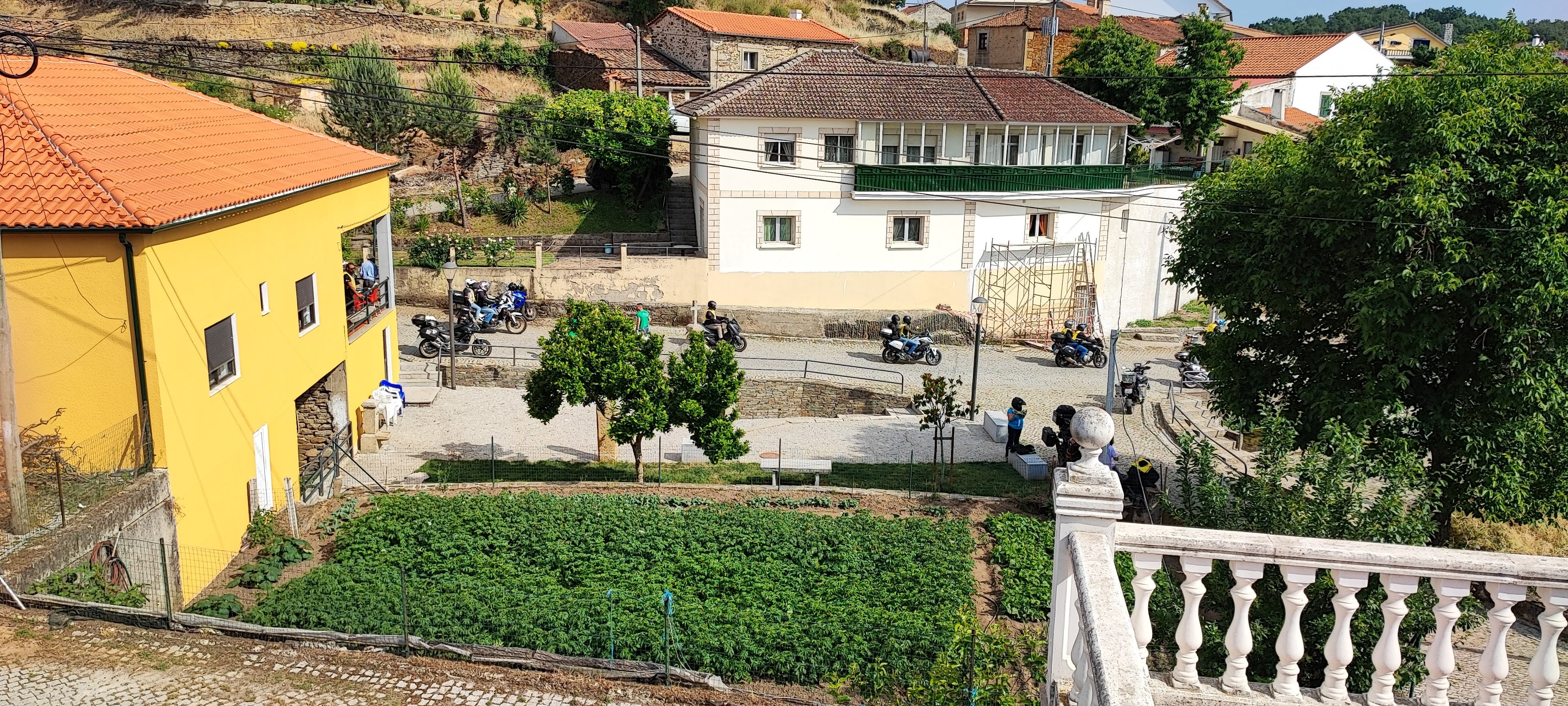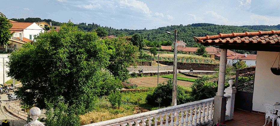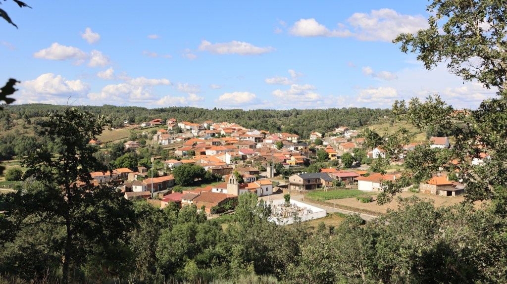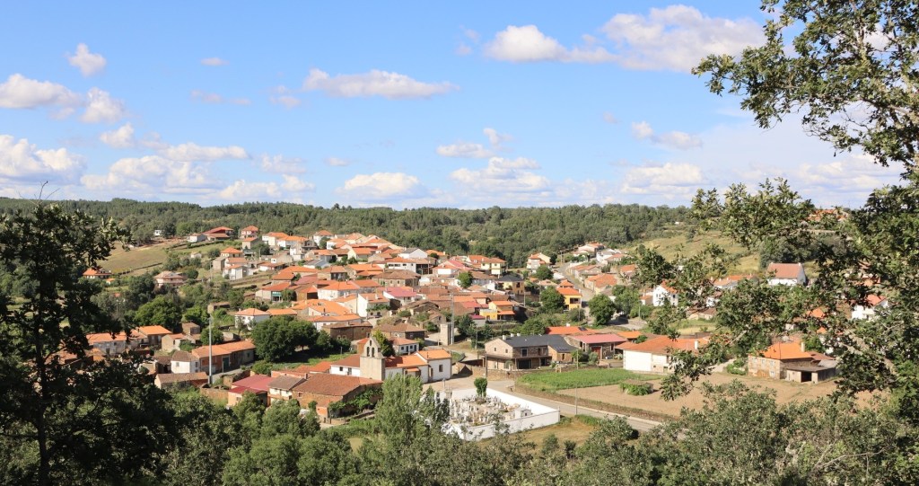 Assi i todo, deilhi de riba, nun dá para ber todo l casariu: de Sante Cristo, nun se béien las casas de la Beiga de l Casal i de la Mediana; de las casas de la Salina, la Çança i l Cachon, solo se béien ls telhados; i, de las de Saiago, ralas son las casas que se puoden ber. Mais loinje, l monte de l Pandon, l Sierro de San Joanico, l Sierro de ls Malhadales, la Gralheira, l Cabeço de la Quecolha, la Chana i l alto de l Milho i de l Rodelhón fórman la sigunda cadena de montes al redor d’Angueira. Fuora antre ls montes de la Gralheira i de la Quecolha, donde s’abista Santa Marinha, de la poboaçon i pa lhá deilhes, nada mais déixan ber.