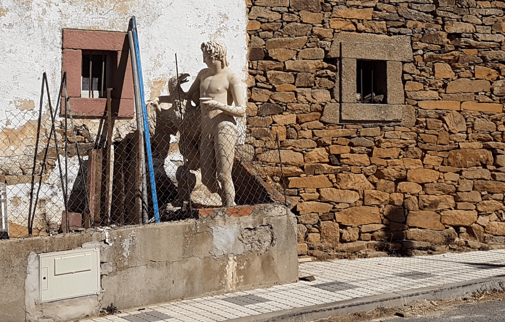 Státua que se puode ber ne l meio de la poboaçon de Malhadas. Retrato tirado an junho de 2019.